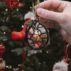 Personalized Eastear Rabbit Suncatcher Ornament, Gift For Eastear Egg Rabbit Suncatcher, Eastear Egg Gift For Family, Window Wall Hanging Home Decor, Car Hanging Interior Rearview